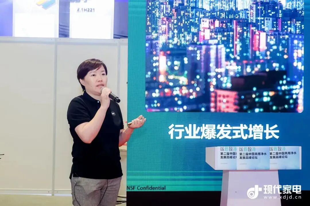 作为国际权威认证,NSF在净水界的认证意味着更高的标准和更高的品质。在商净场景多元化和产品创新化的今天,对饮用水安全的认证有哪些变化,又有哪些更高质量的认证可以赋能商净市场的新质发展。NSF大中华区涉水业务部高级经理孙佳蕾与会介绍了商用场景下的更高质的饮水安全认证方案。