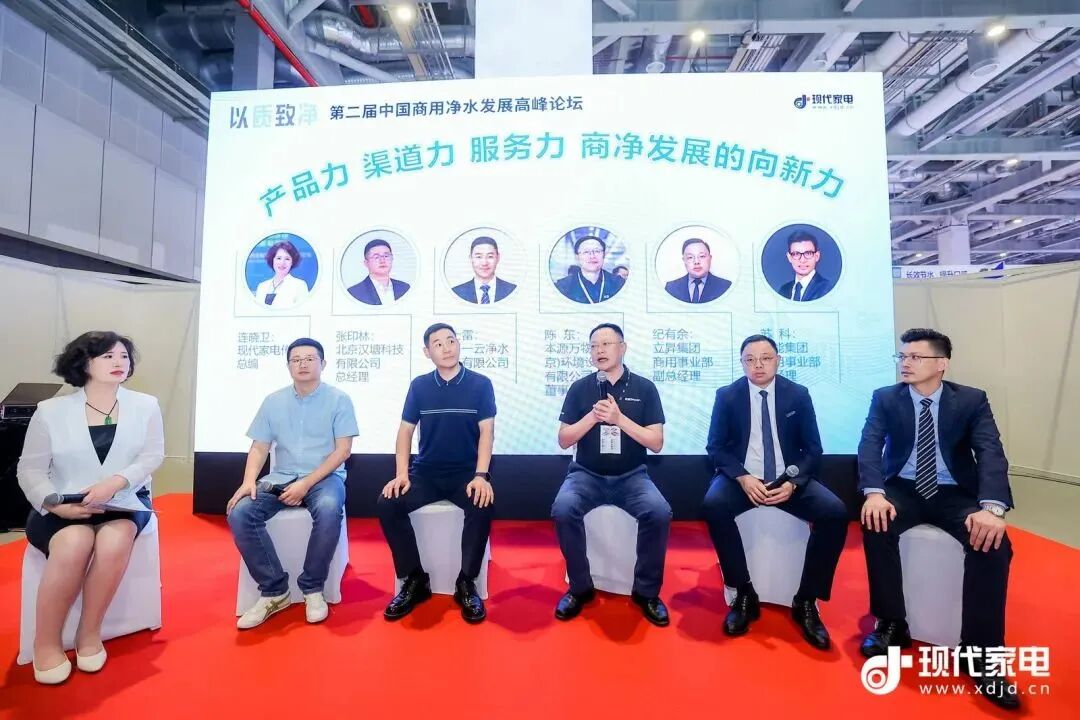 在本次峰会的论坛环节,本源万物(南京)环境设备有限公司董事长陈东;立升集团商用事业部副总经理纪有余;苏州一云净水科技有限公司总经理付士雷;开能集团商用事业部总经理苏科;北京汉塘科技有限公司总经理张印林,与论坛主持人现代家电传媒总编连晓卫共同发起现场思辨。